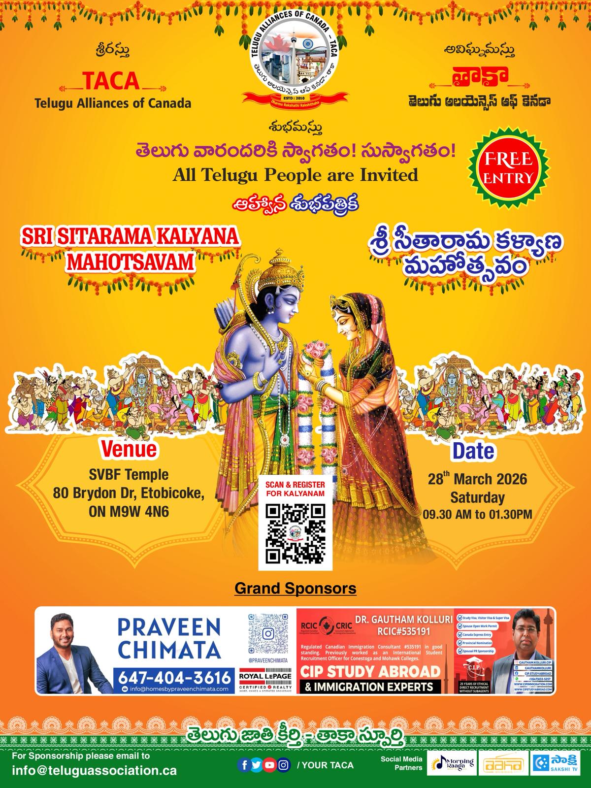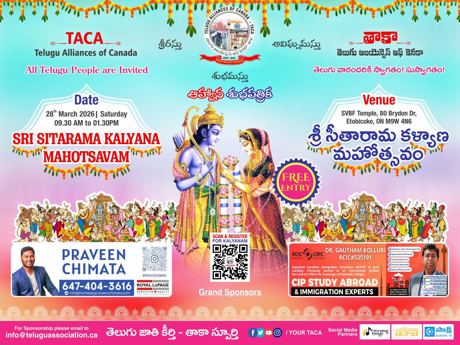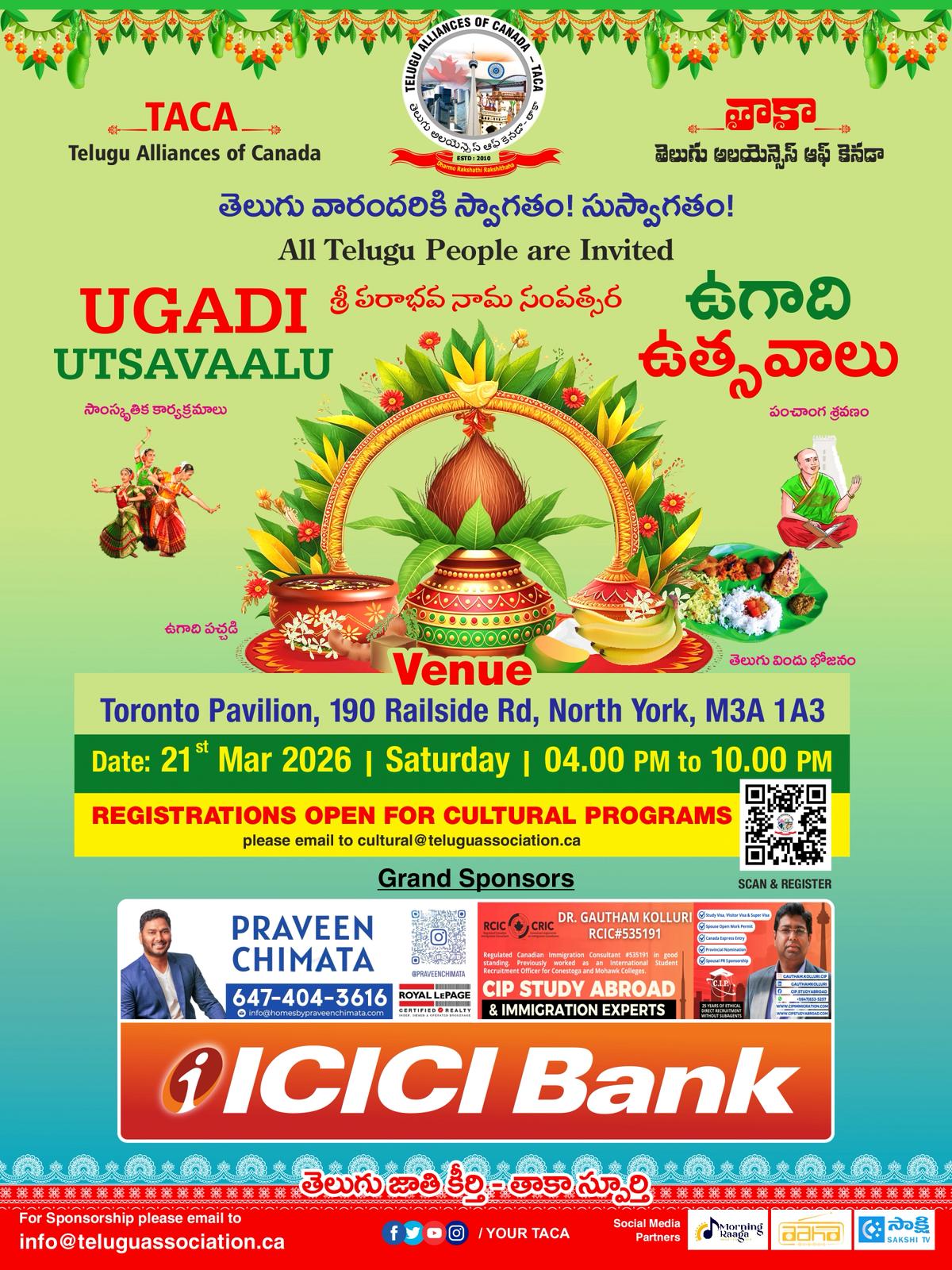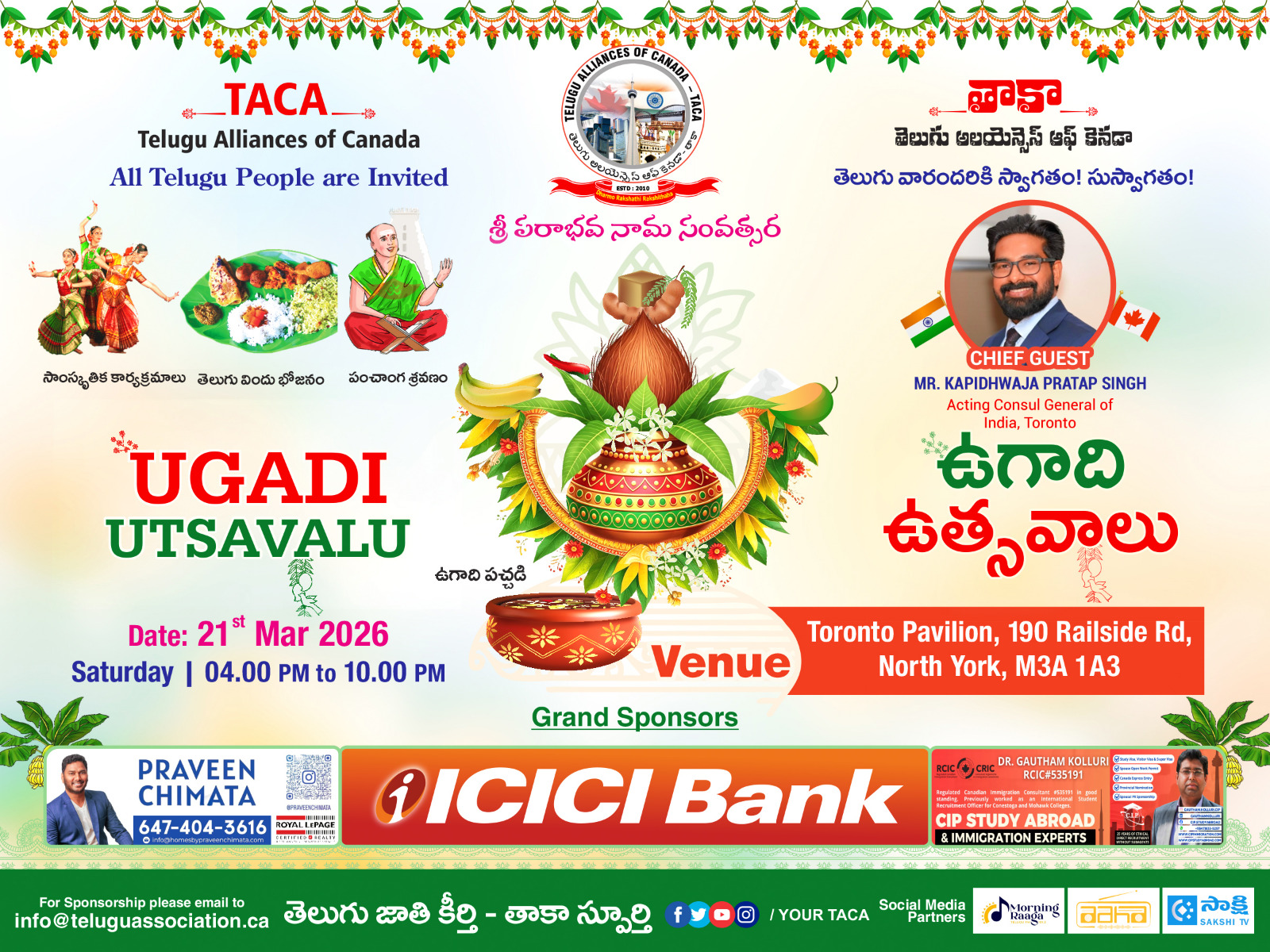 TACA Governing board has started preparations to set up the stage to celebrate our Telugu New Year, Sree Parabhava (శ్రీ పరాభవ నామ సంవత్సరం) Nama Samvatsaram with our Mega event, “UGADI USTAVALU 2026” on 21st March at TORONTO PAVILION, Railside road, North York.